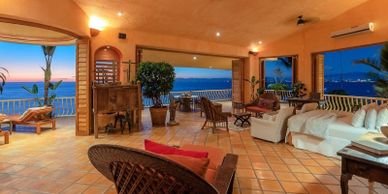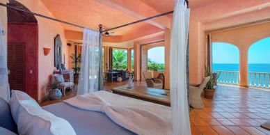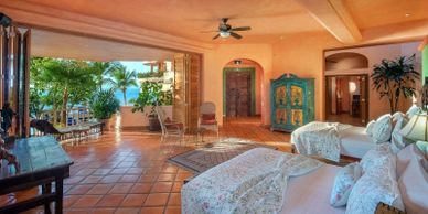 Villa Estrella Mar a 22,000 sg ft property designed in traditional Spanish colonial architecture is nestled into the hillside on 380 feet of secluded beachfront. Each bedroom suite is a marvel of elegance with the charm of Mexico, all uniquely decorated and filled with original artwork collected throughout Mexico and South America. The best part is the villa is its location on Banderas Bay. Each suite has a view of the ocean.